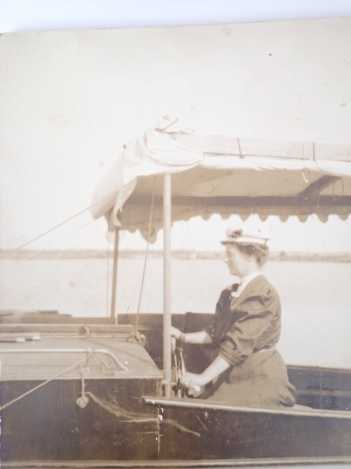 "Lottie" Sims at the wheel of “The Lottie” circa 1916 |