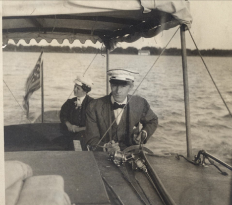 Charlotte S. Sims and her husband Edwin on "The Lottie" on Saginaw Bay |