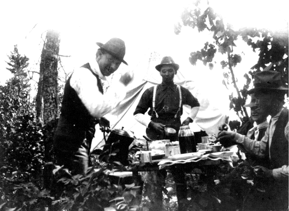 Edwin W Sims (left), as a young man, camping on Saginaw Bay. |