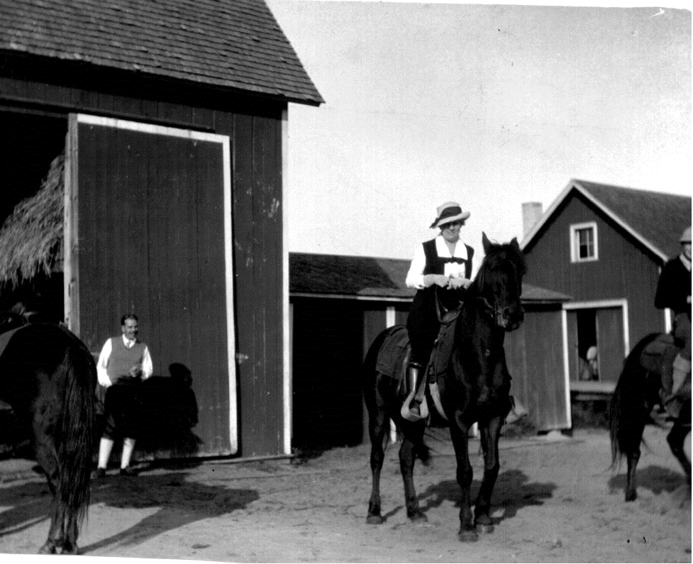 Riding, sailing, fishing, and tennis were something in which the entire family participated. As Ed and Lottie’s family grew and married, all six of Sims children built individual homes arrayed along the shore east of the Ranch House and all came to spend the summers at Sims Ranch.