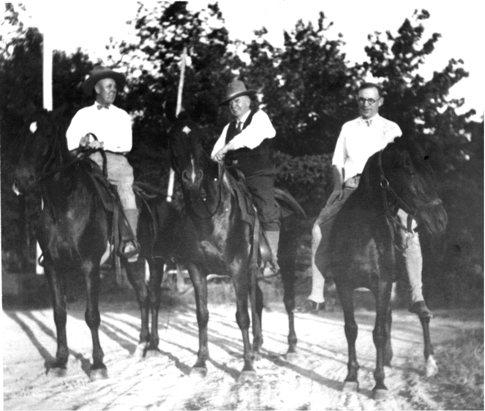 The Ranch House was thrown open and throngs of guests, often representatives of the political and legal professions, famous singers, and entertainers on horseback created large shooting parties. |