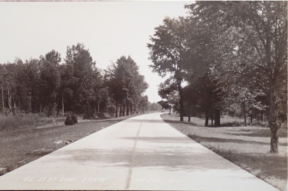 The parcels of land included two farms, one at the “North End” of the ranch (at the junction of Bessinger and Delano Roads) and another on Pt. Au Gres. These farms were tasked with providing fresh produce and meat for the many guests during the summer months and providing an abundance of food for the annual hunts. Often the stock was abundant and sale of lambs, bulls, dogs, and horses would be advertised in the Detroit Free Press. By 1950, the complex included a gas station and a restaurant/tavern (at the intersection of Foster Road and US 23 – known as Sims Ranch Corners). |