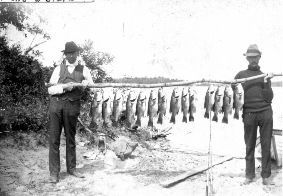 Catch of black bass at the ranch. (Edwin Sims right) |