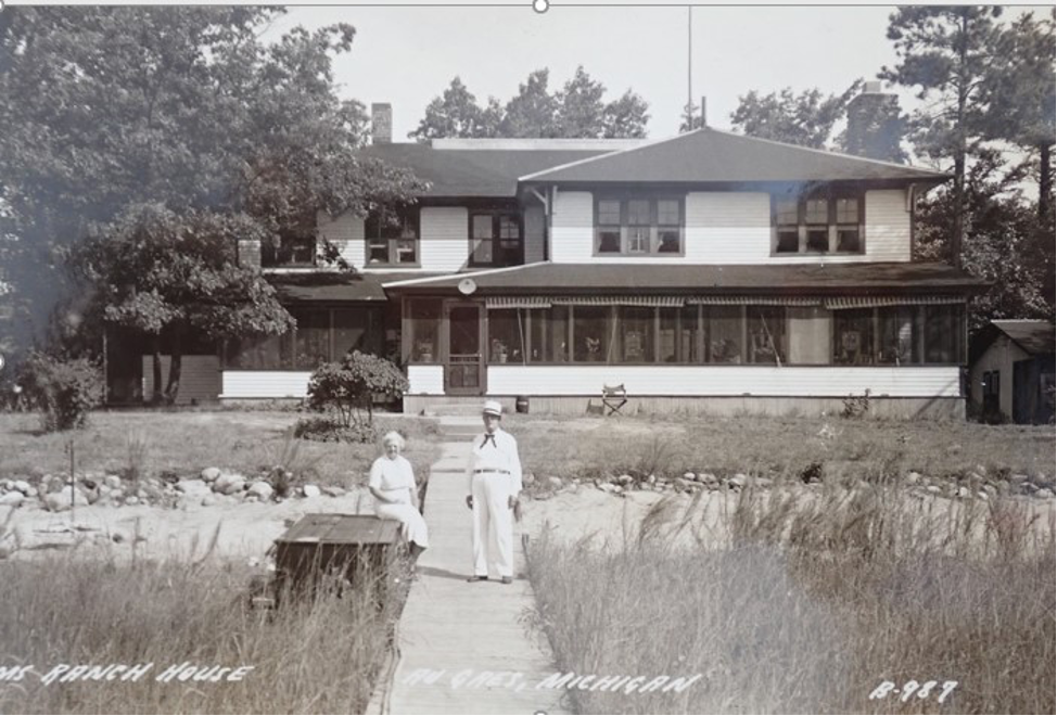 As Edwin W. Sims’ fortunes and family grew, he and Lottie started looking for a place to relax away from the stresses of the big city. He had loved Saginaw Bay as a young man living in Bay City, and by 1907 (after the anti-trust case against Standard Oil) he and Charlotte started to search for a place where he could “sail a boat and live in the woods.” He reportedly bought a boat in Bay City and sailed to Port Au Gres; further up the shore on the west side of Saginaw Bay; nearby where he went camping as a young man. he found the wide beach and deep woods he wanted. While Pt. Lookout was a well-established vacation spot with weekend steamers from Bay City, the majority of land to the west had been abandoned and was considered worthless being mostly swamp, swale, and sandy ridge.