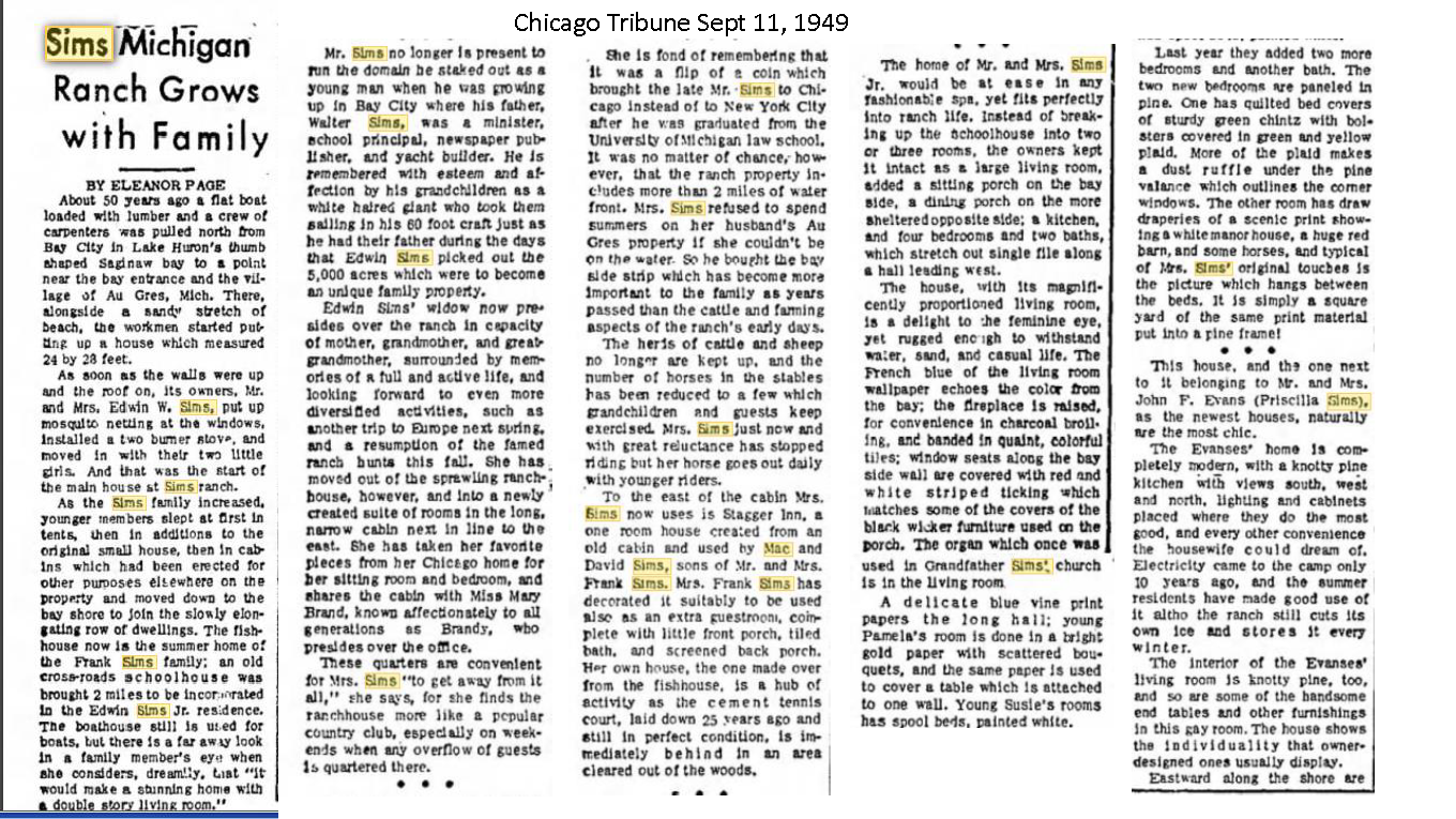 Chicago Tribune article on the growth and history of the Sims Ranch from 1949: |